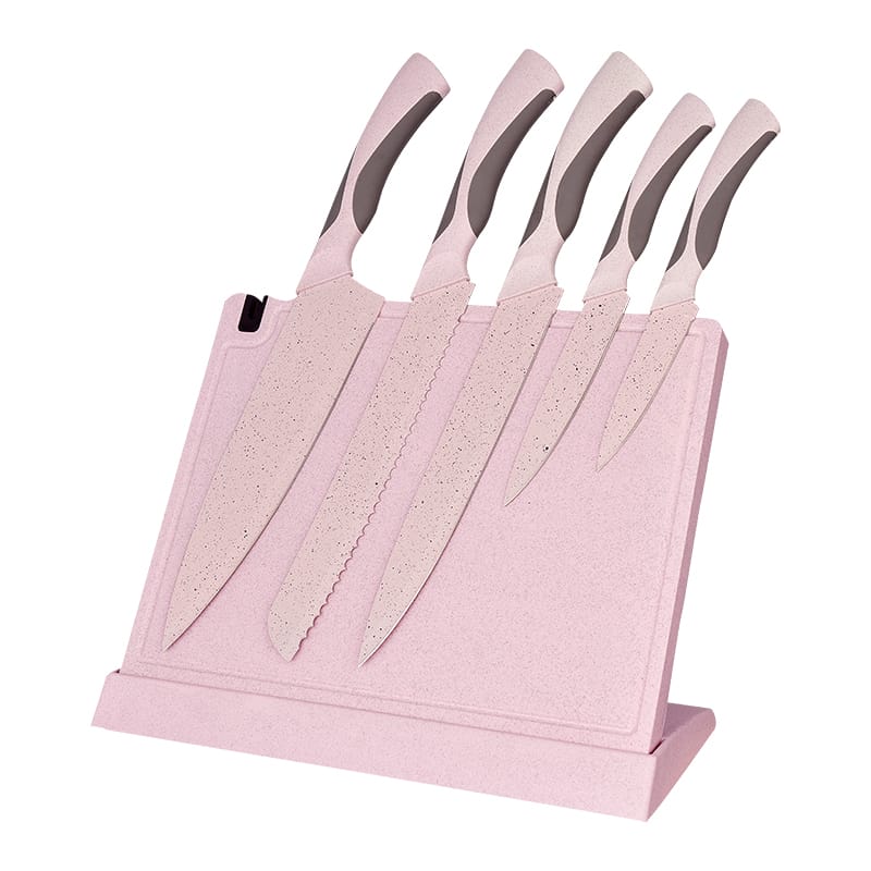 YW-A235H -6PCS Professional High-Carbon Steel Nno-Stick Hollow Handle Kitchen Knife Set With Plastic Knife Holder