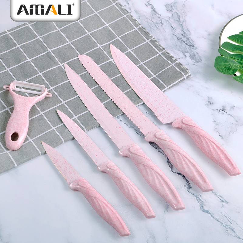 Size | 8” chef knife ,1.5mm 8″ bread knife,1.5mm 8” slicing knife,1.5mm 5” utility knife,1.2mm 3.5” paring knife,1.2mm |